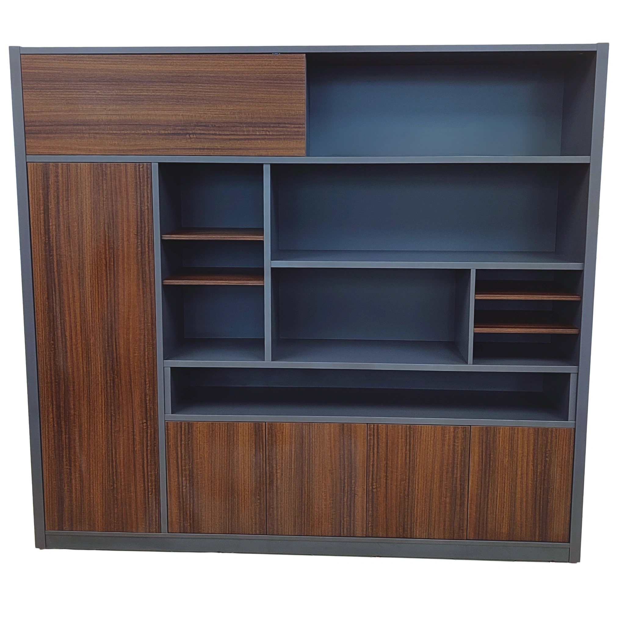 Élevez votre environnement de travail avec cette bibliothèque de bureau exceptionnelle en bois foncé et gris anthracite. Dotée d’un design à la fois moderne et sophistiqué, cette pièce est l’incarnation parfaite de l’équilibre entre style et fonctionnalité. Que ce soit dans un bureau privé, une salle de direction ou un espace professionnel haut de gamme, cette bibliothèque s’intègre harmonieusement dans tout environnement contemporain.