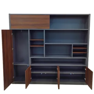 Cette bibliothèque a été conçue pour offrir une solution d’organisation bien pensée. Ses rangements variés, incluant des compartiments ouverts pour exposer vos livres ou objets décoratifs et des espaces fermés pour garder vos documents parfaitement ordonnés, garantissent une gestion efficace de vos effets professionnels. Ne vous souciez plus des encombrements grâce à ces fonctionnalités qui simplifient votre quotidien tout en améliorant la fluidité de votre espace.