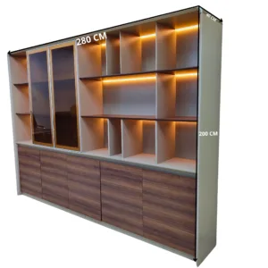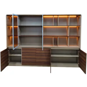 Élégante et fonctionnelle, cette bibliothèque murale de 280 cm en bois marron et gris beige séduit par son design moderne, ses finitions haut de gamme et son éclairage LED intégré. Dotée de portes vitrées et de multiples rangements, elle allie style, praticité et sophistication pour sublimer tout espace professionnel ou résidentiel.