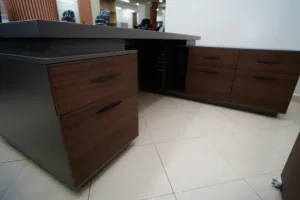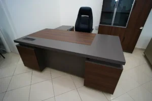 Le Bureau D200 est conçu pour répondre à vos besoins quotidiens avec une finition marron chic qui apportera chaleur et sophistication à votre espace. Il dispose d’un retour qui optimise votre espace de travail, tout en offrant un caisson de rangement fixe pour vos documents et fournitures. Grâce à sa conception robuste, ce bureau est durable et résistant, garantissant des années d’utilisation sans compromis sur la qualité.
