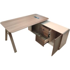 Ce bureau est conçu pour répondre aux besoins des professionnels exigeants. Il dispose d’un retour latéral pratique et spacieux, parfait pour garder vos documents ou partager l’espace avec un ordinateur secondaire. En outre, le caisson mobile à 3 tiroirs, doté d’une fermeture centralisée, assure un rangement sécurisé. Vous pouvez stocker vos objets de valeur et vos documents importants tout en gardant votre bureau en ordre.