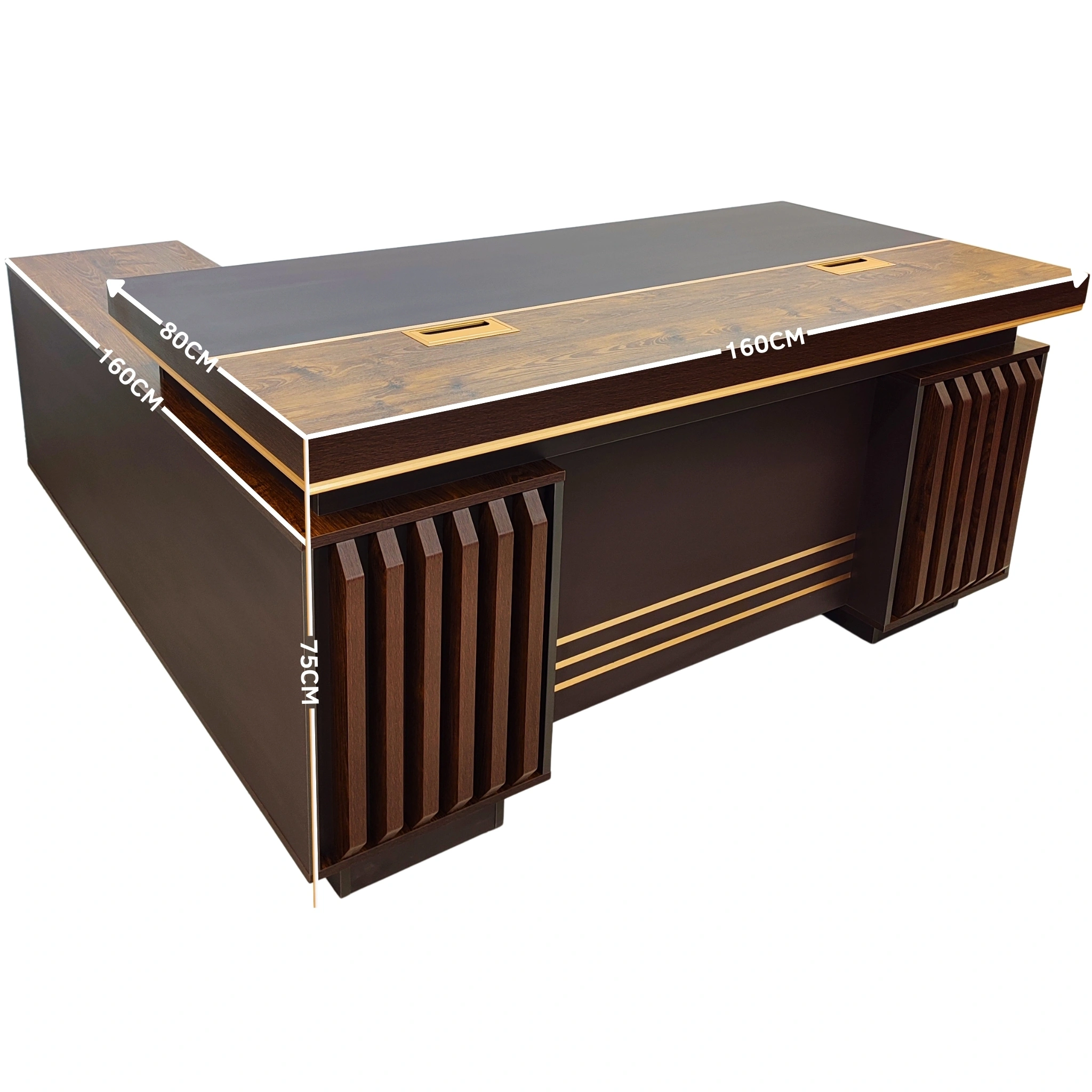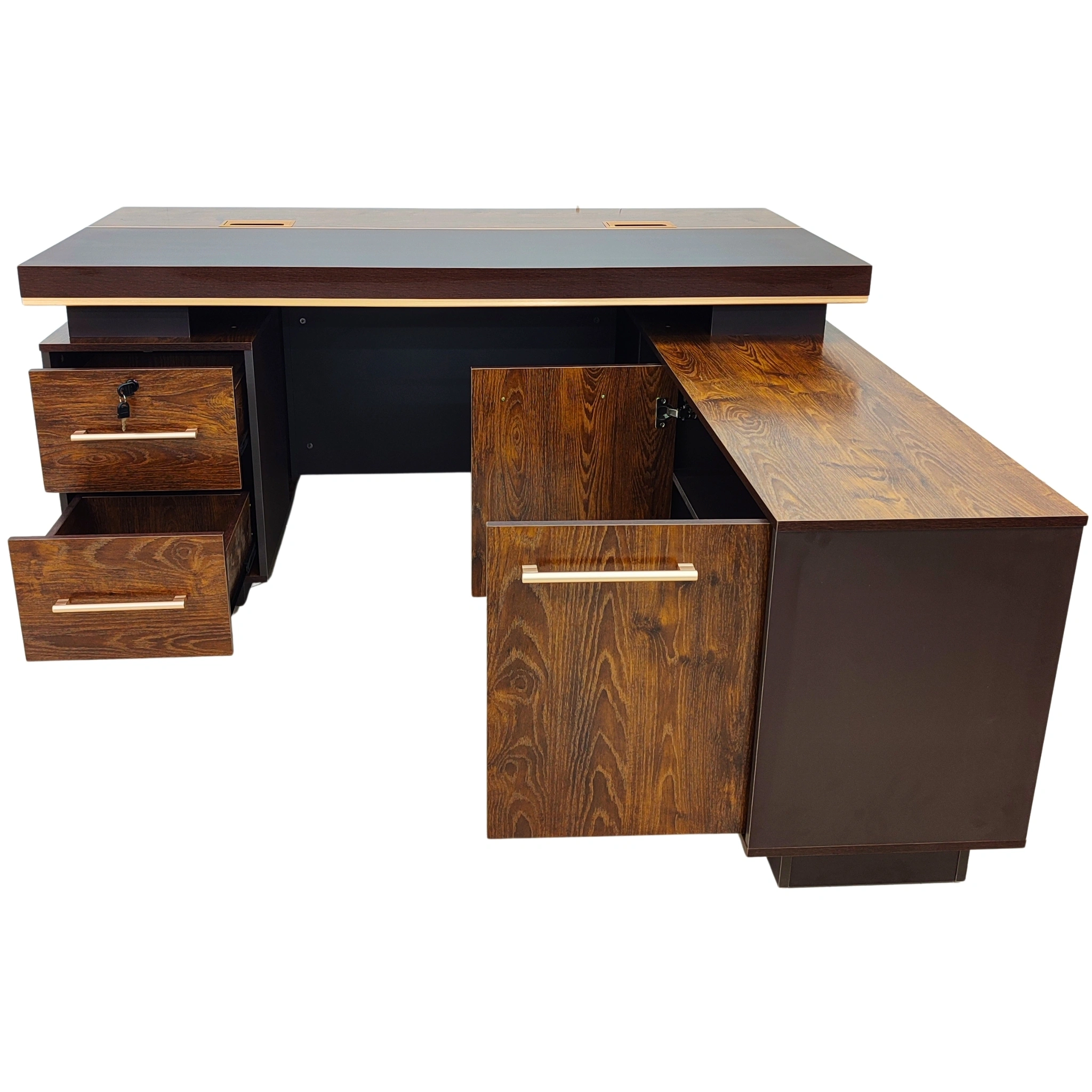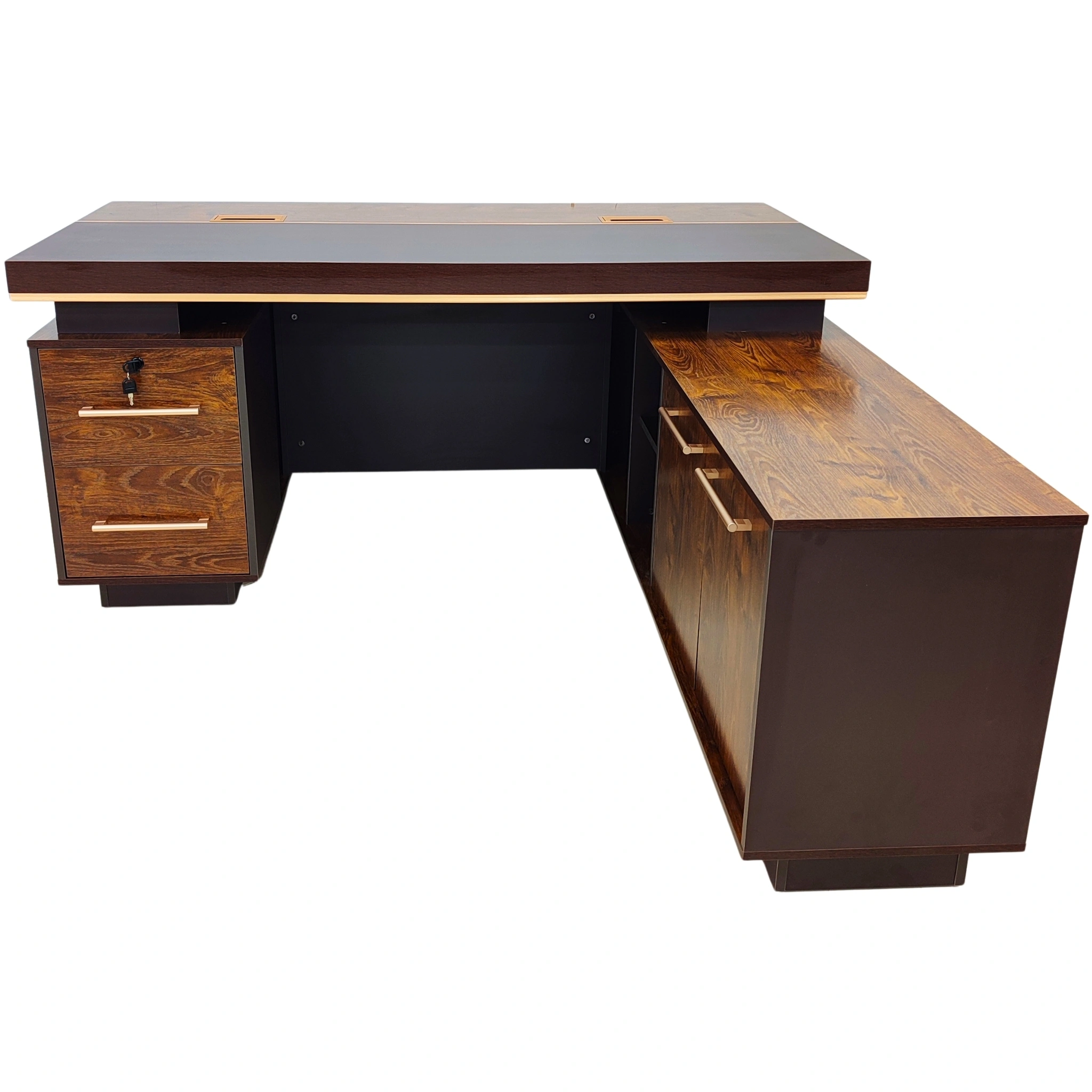 La finition bois foncé élégante apporte une esthétique raffinée et intemporelle, idéale pour les espaces de direction et les bureaux haut de gamme. Ce design sophistiqué assure que votre mobilier reflète parfaitement votre professionnalisme et votre attention au détail. Que ce soit dans une salle de réunion ou dans votre bureau personnel, il établit une ambiance prestigieuse et accueillante.