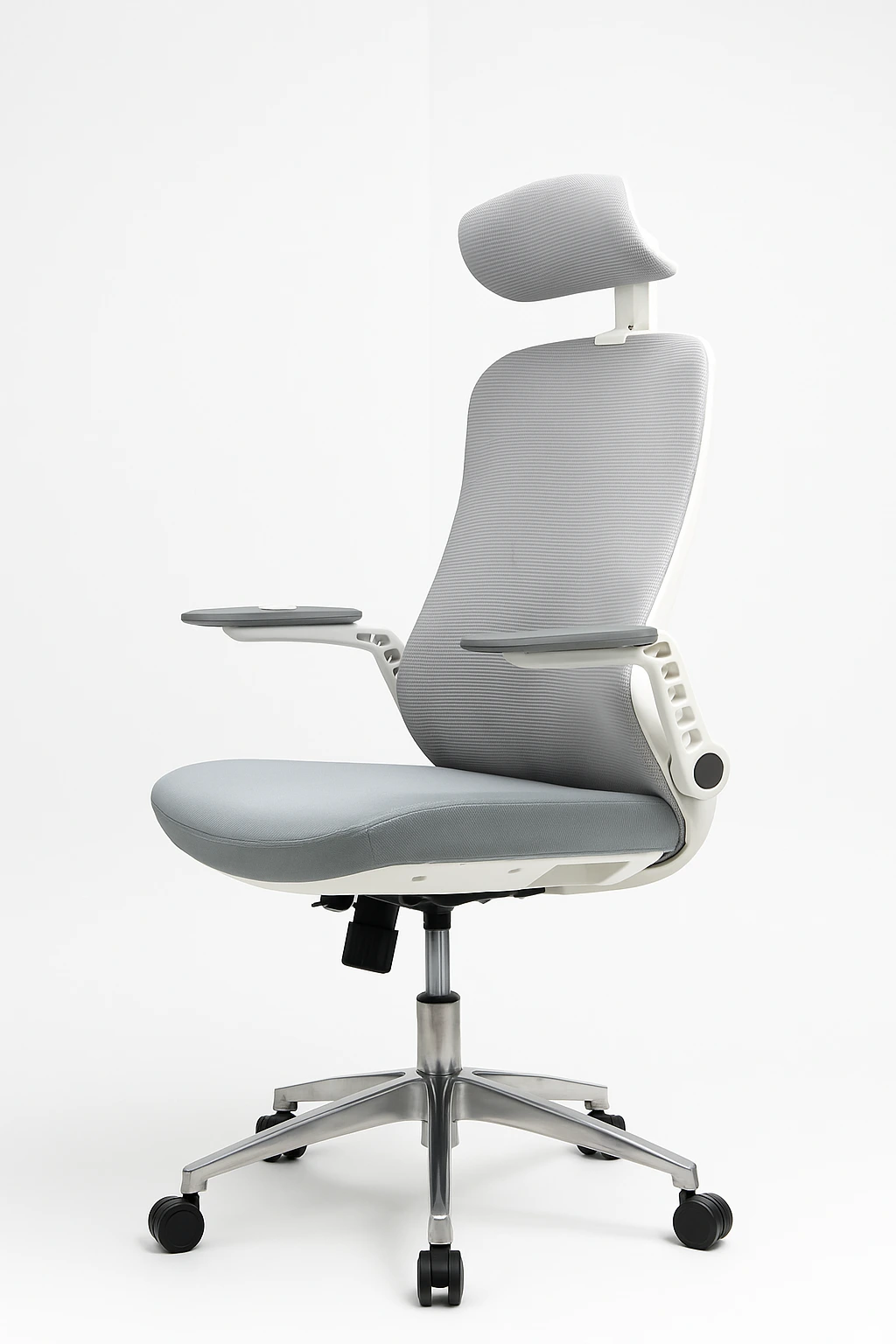 Le revêtement en tissu gris respirant est non seulement élégant, mais il garantit également une utilisation confortable tout au long de la journée. Associé à une base en aluminium robuste, notre chaise de bureau est conçue pour résister à l’épreuve du temps. Que ce soit pour des sessions de travail intensives ou des moments de repos, vous apprécierez le mélange parfait de confort, de style et de durabilité qu’elle offre chaque jour.