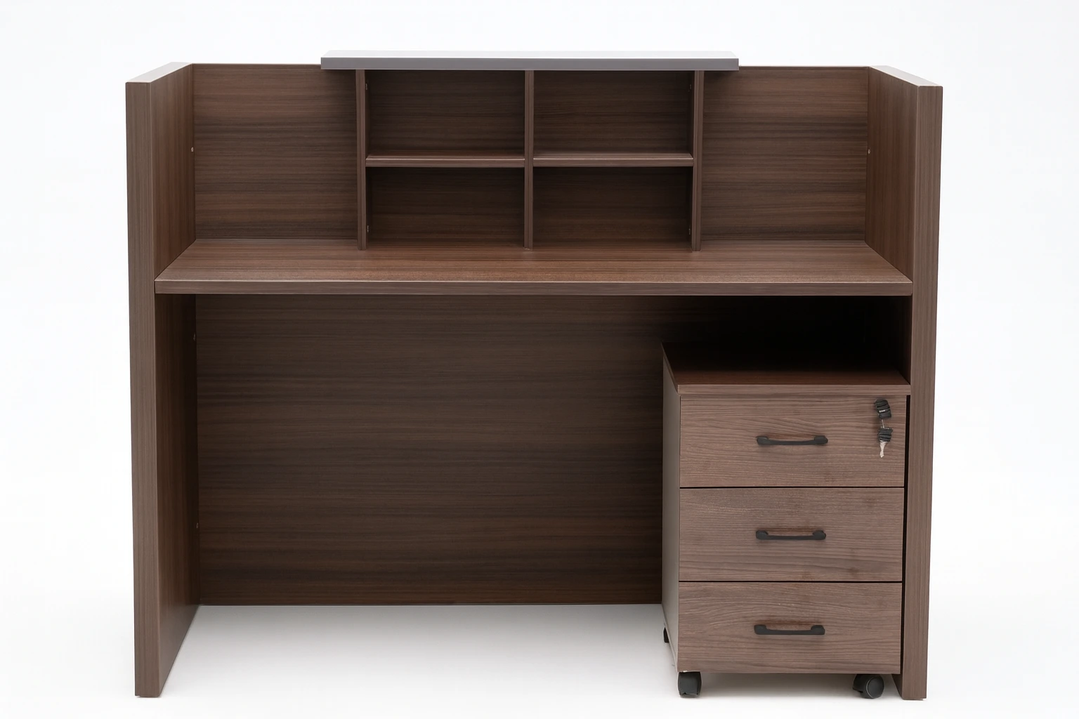 Le comptoir d’accueil ne se limite pas à être un élément décoratif. Doté de rangements pratiques, il vous aide à maintenir un espace organisé, permettant de conserver vos documents, matériels ou fournitures importantes à portée de main. Le caisson verrouillable intégré offre un niveau supplémentaire de sécurité pour vos objets de valeur ou fichiers sensibles, garantissant la confidentialité et le contrôle dans vos activités professionnelles.