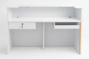Outre son esthétique raffinée, ce comptoir d’accueil est équipé de tiroirs pratiques, dont un verrouillable pour une sécurité accrue. Stockez vos documents importants, fournitures de bureau et effets personnels en toute sérénité. Ce meuble est conçu pour garantir une organisation optimale de votre espace de travail, améliorant ainsi l’efficacité et l’expérience client.